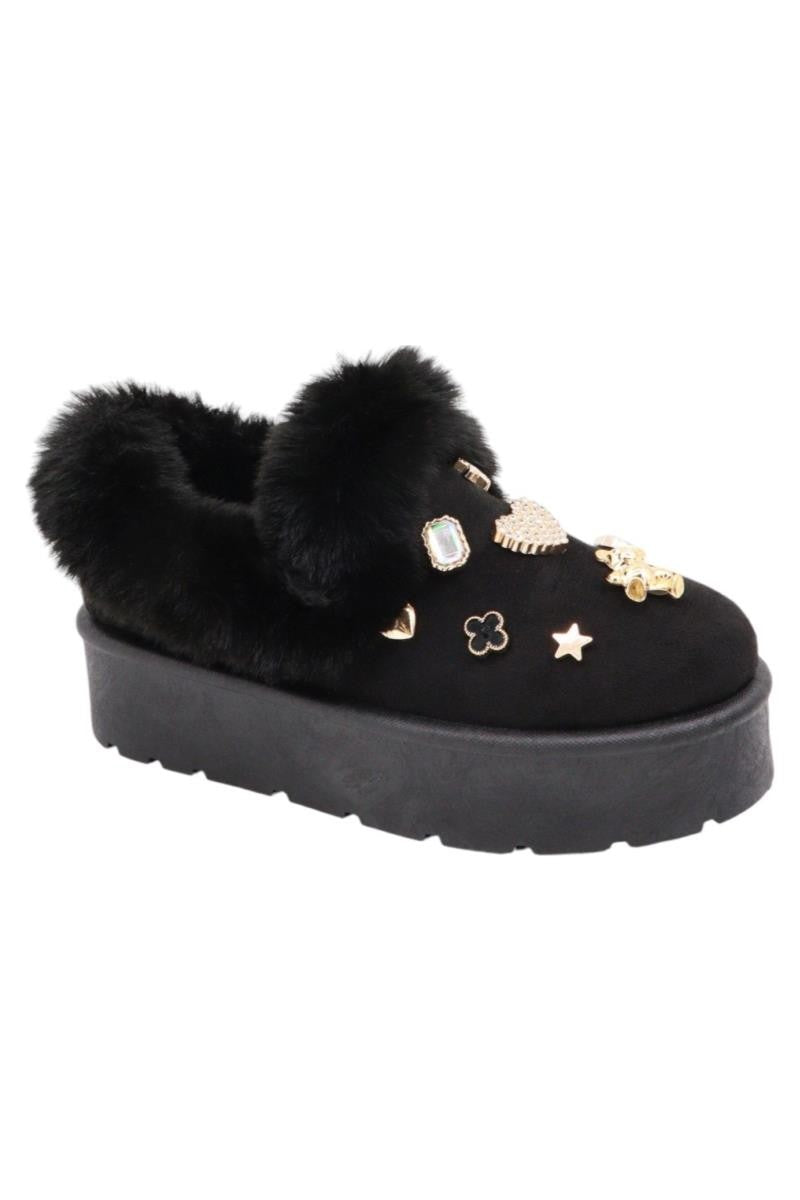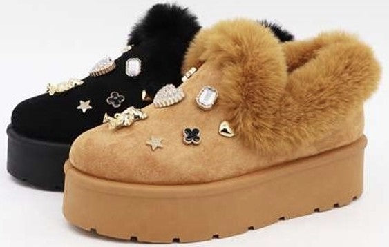WOMENS FURRY FUR PLATFORM SNOW BOOTIES, ANKLE BOOTIES, WINTER BOOTIES, FUR COLLAR, LUG SOLE, LUGGED, ANTI SLIP, WARM, FAUX FUR, FLAT, FOOTBED, FASHION, COMFORT