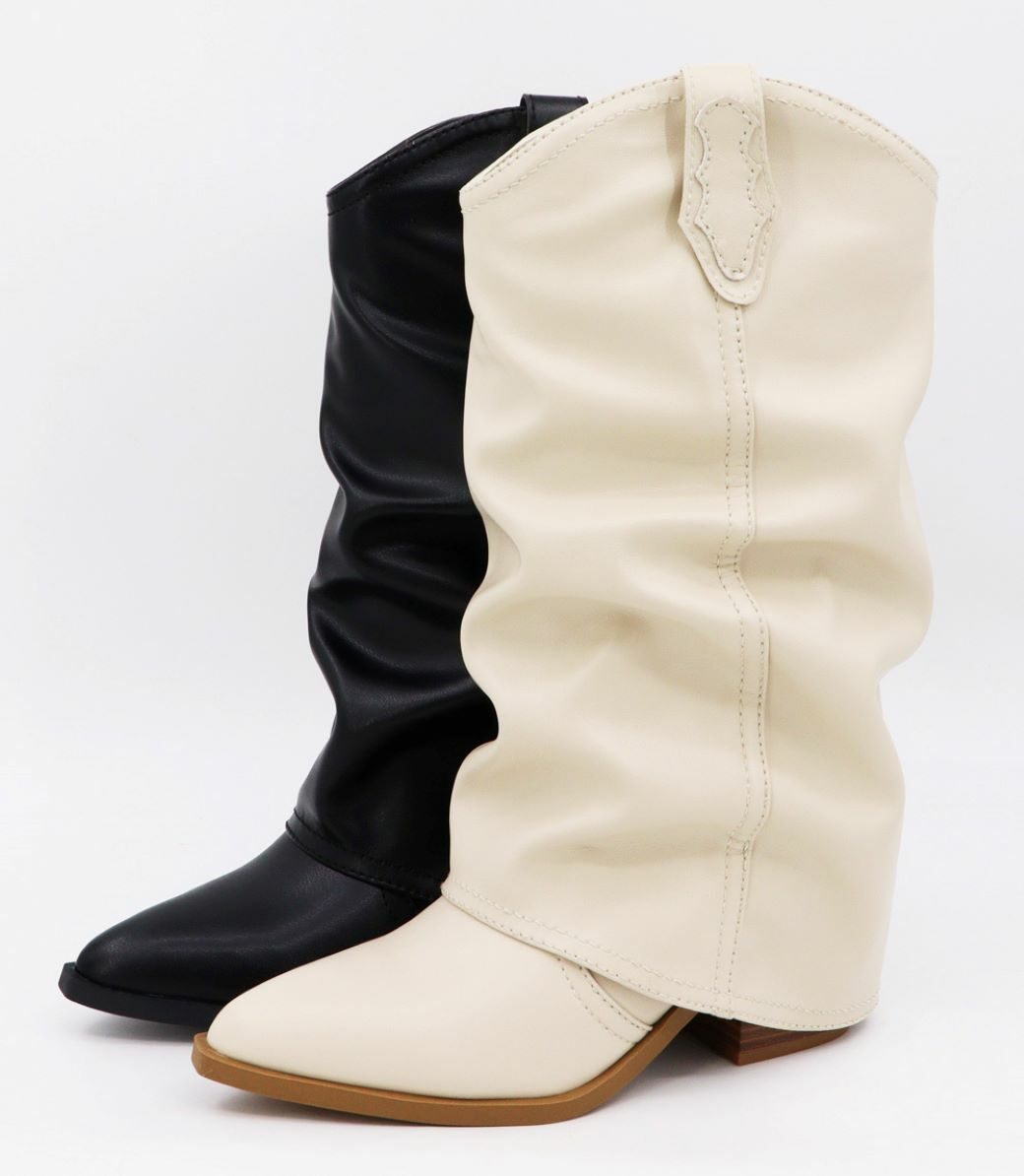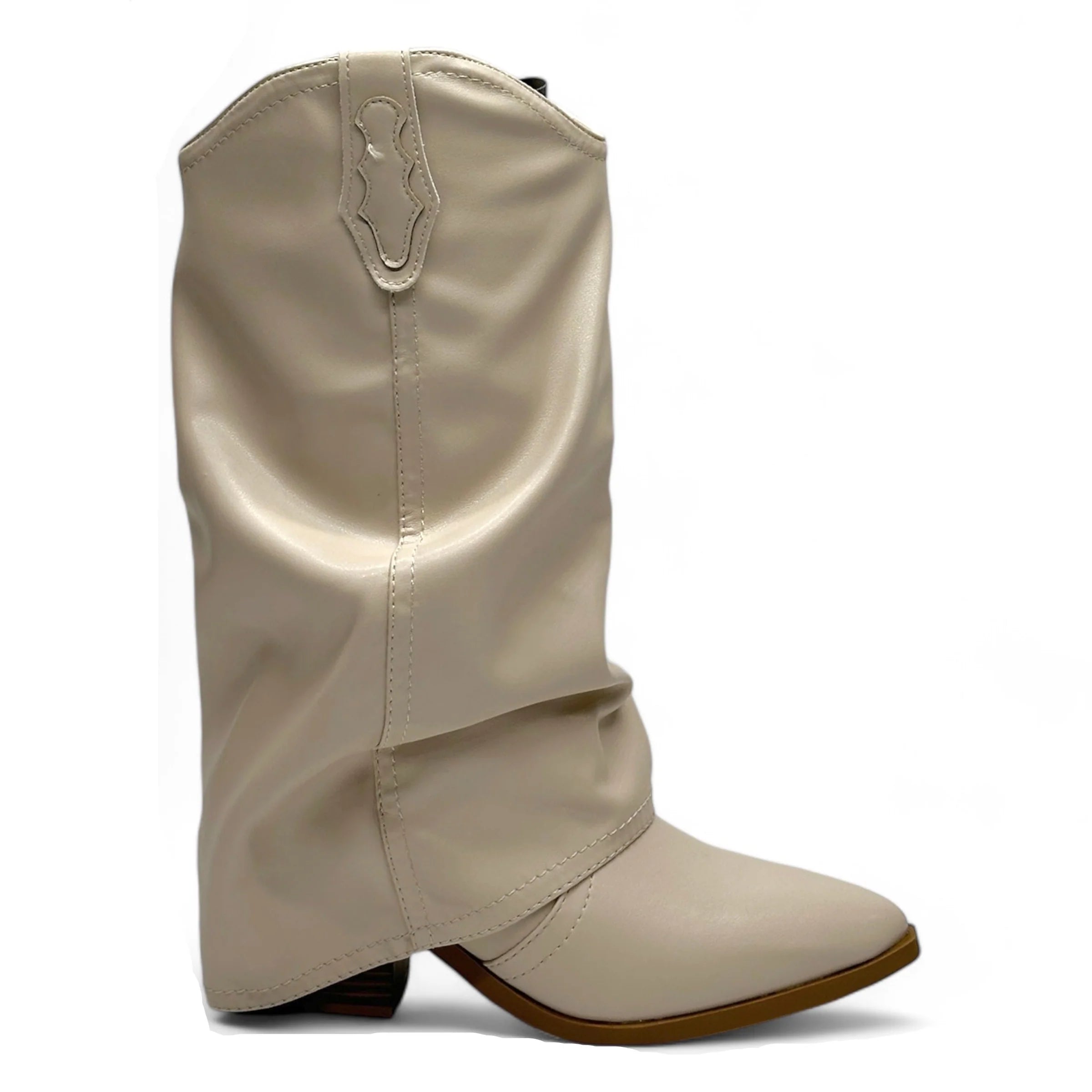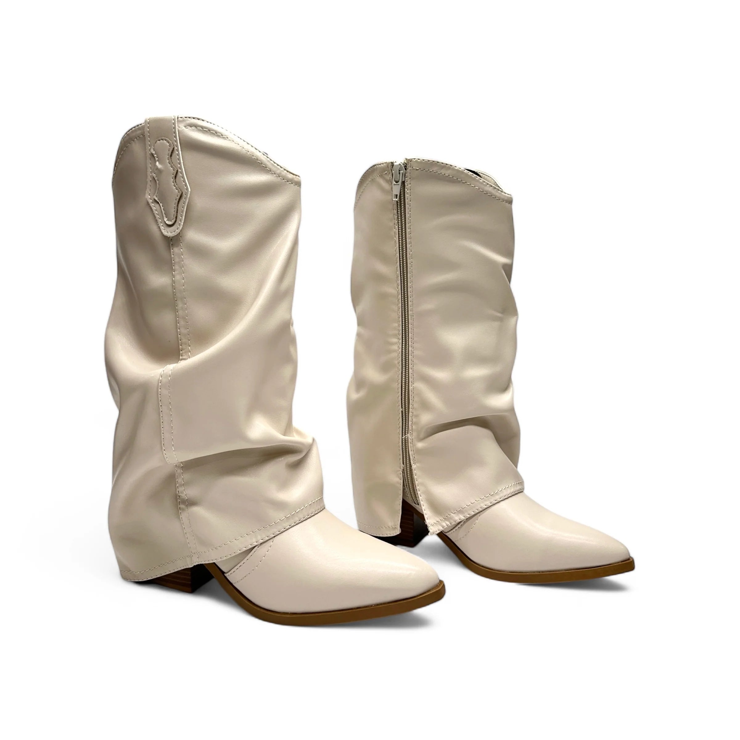 - IVORY TONE MID CALF WESTERN FASHION BOOTS