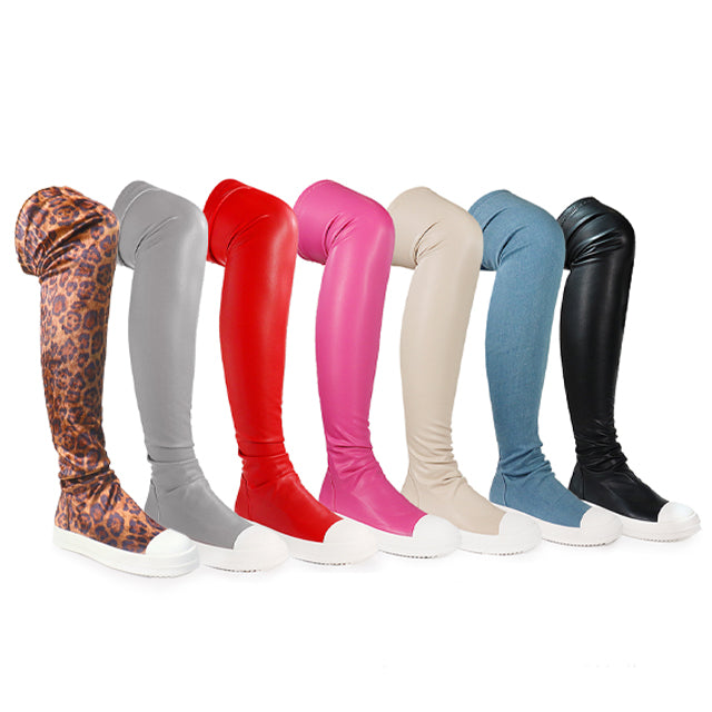 The Leather Flat Over The Knee High Boots Wannabe-1 from Liliana are designed with stretchable leather for superior comfort. Expertly crafted with an above the knee design and a comfortable flat heel, you're sure to be satisfied with these boots.