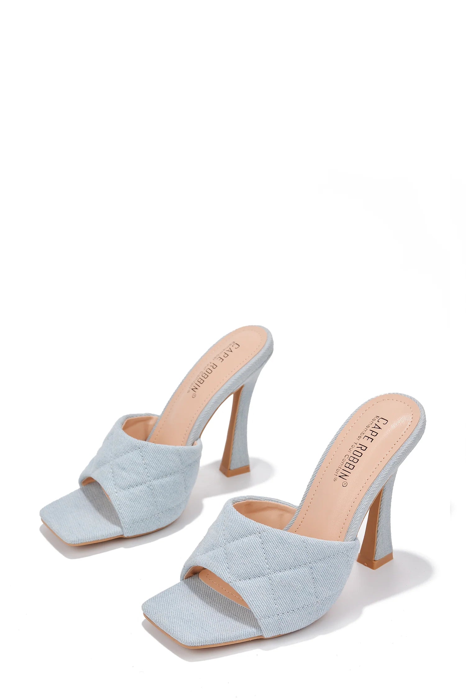 Brenton denim high heels are the definition of style and comfort. The square toe adds a modern edge,while the high heel gives you added height. The padded insole makes the shoe comfortable to wear all day long. Perfect for a stylish everyday look. Get it blue,black,or light blue.