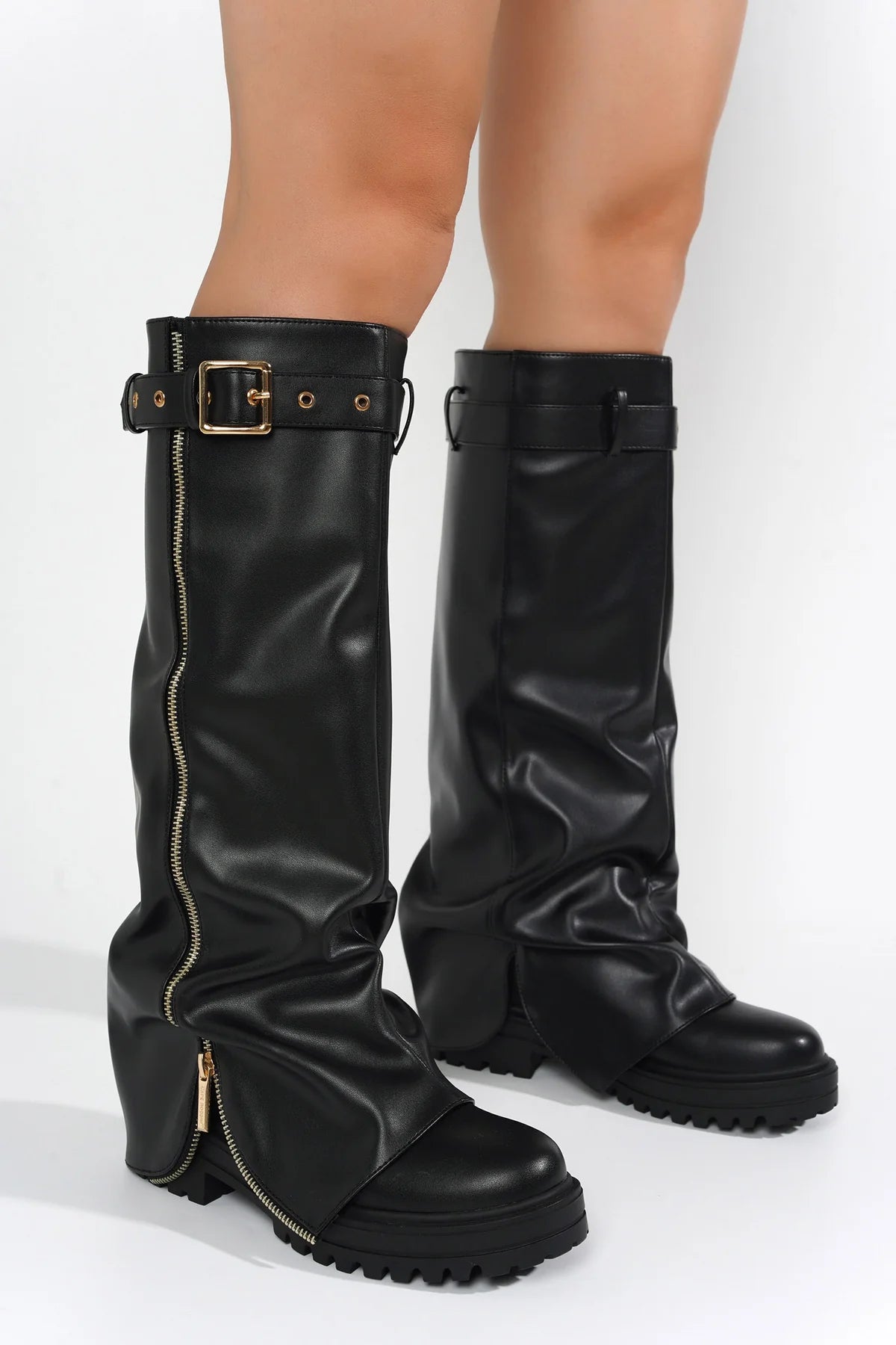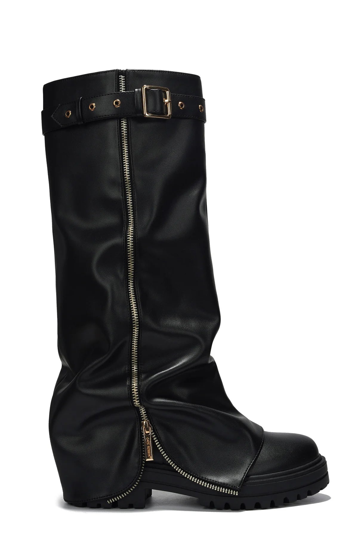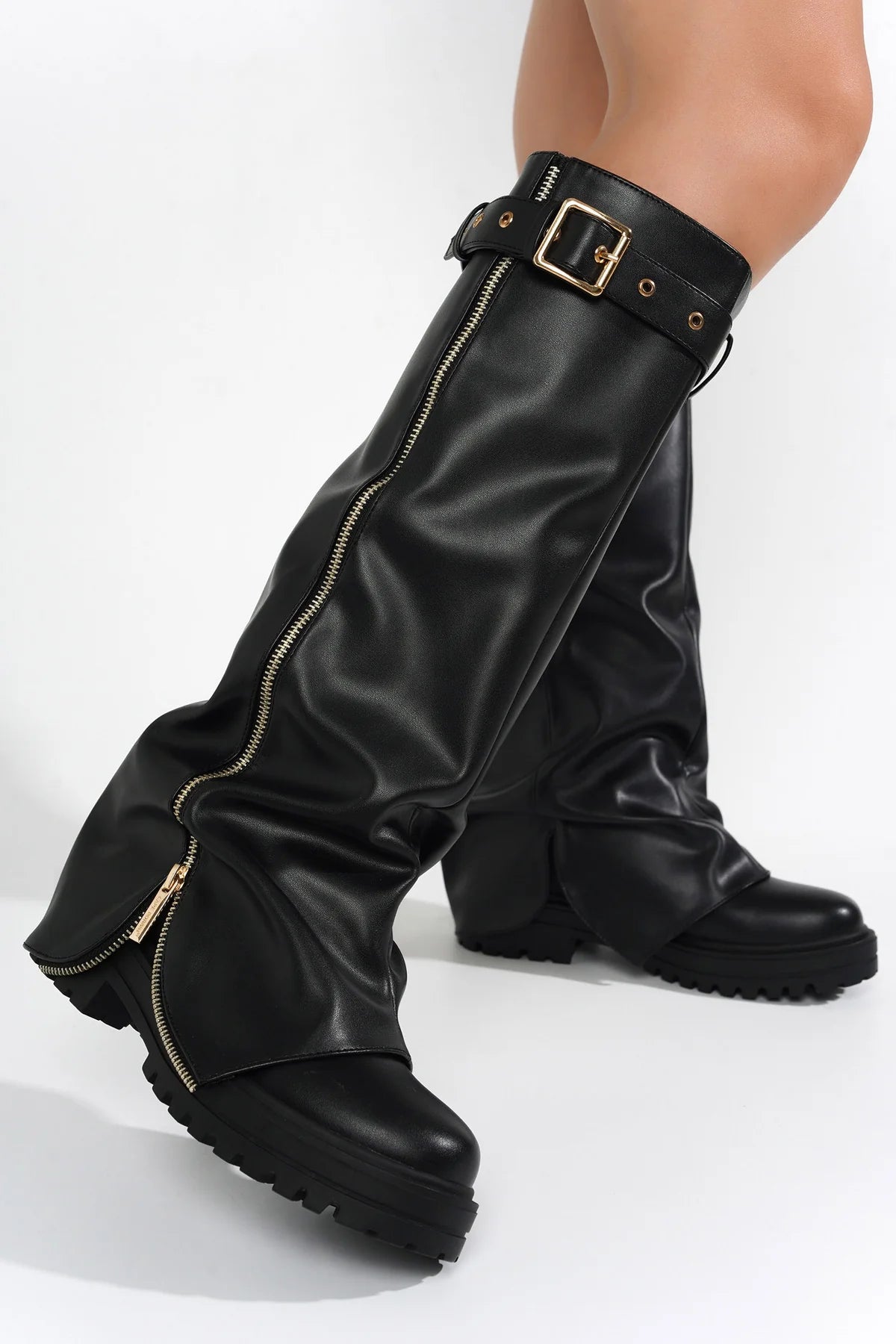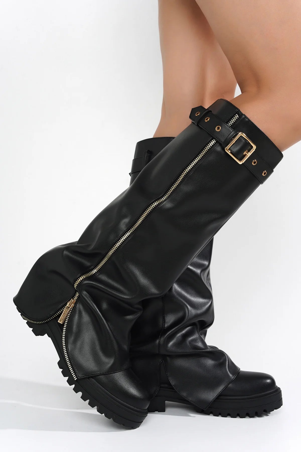 Cape Robbin's Funafuti boots serve a unique style, instantly elevating your wardrobe. Plus, the fold-over and belt buckle design is a showstopper.