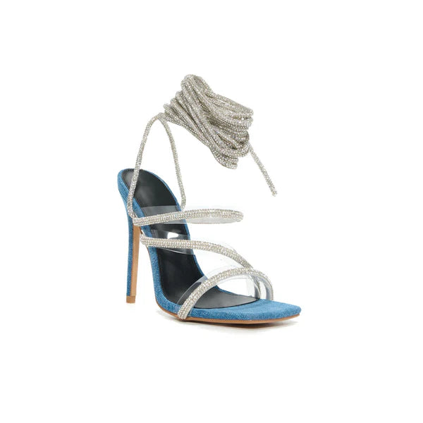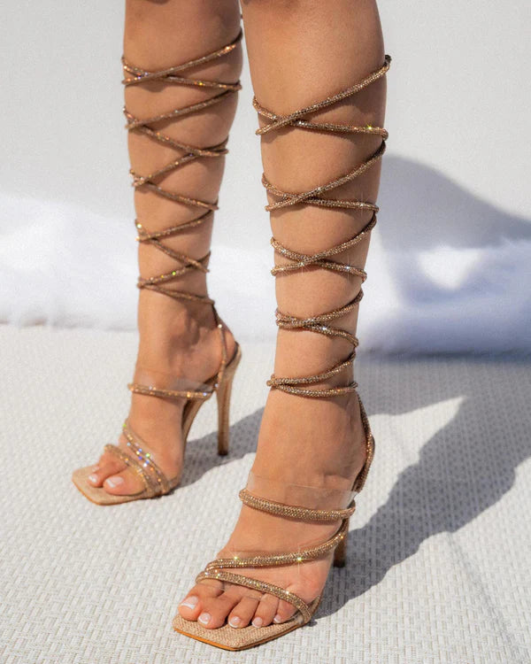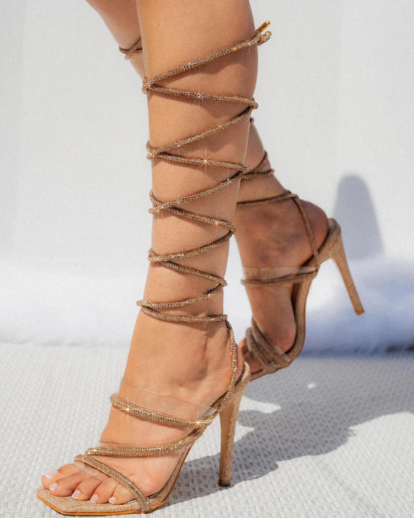 Fashion Crystal Heel Lace Up Strappy Sandals Stilettos