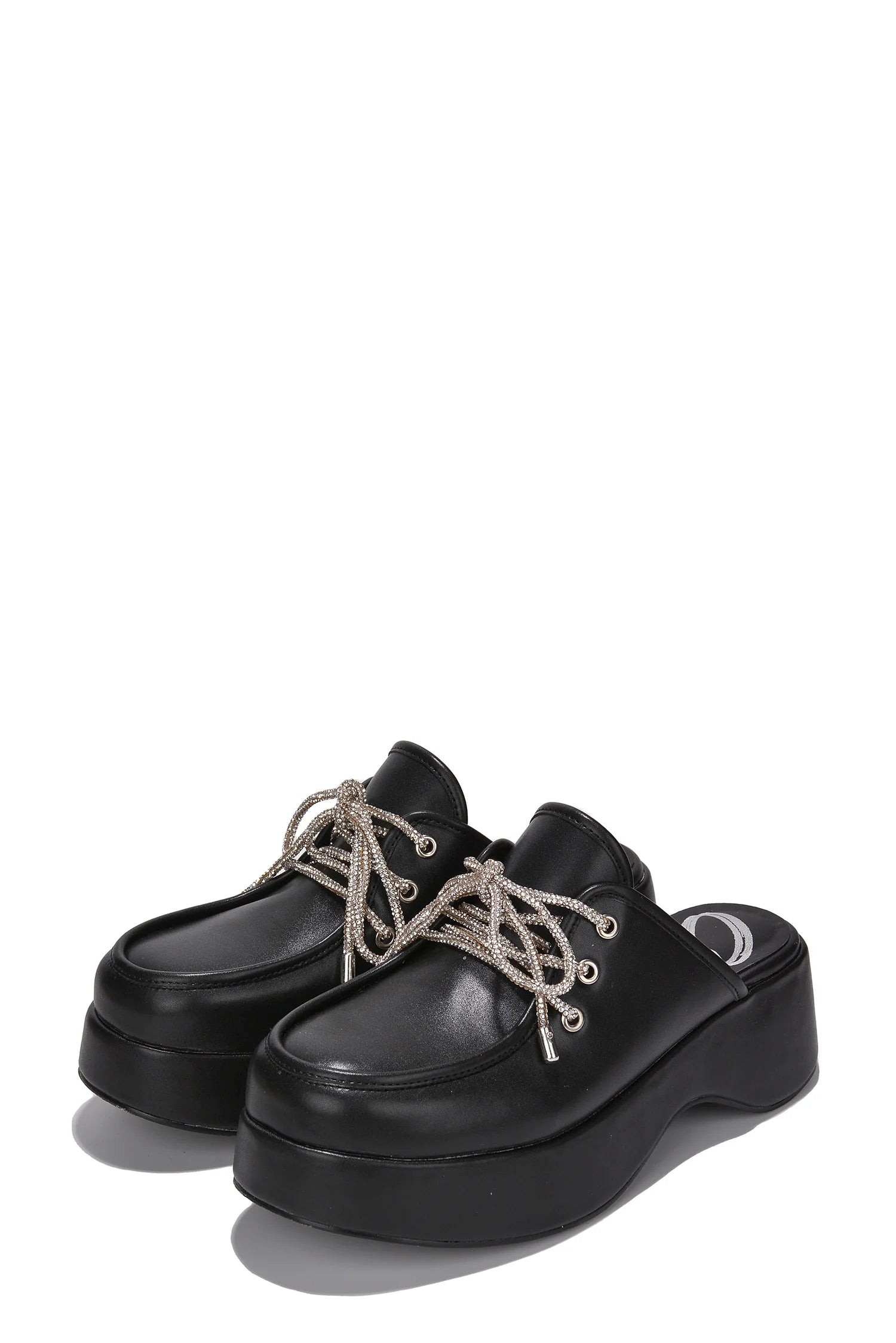 Cape Robbin Kanma Women's Slip-on Platform Mules w/Rhinestone Shoe Lace