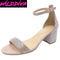 The LARINA-29 heel features a low chunky block heel, single strap design, ankle strap buckle closure, open toe and has a padded insole.