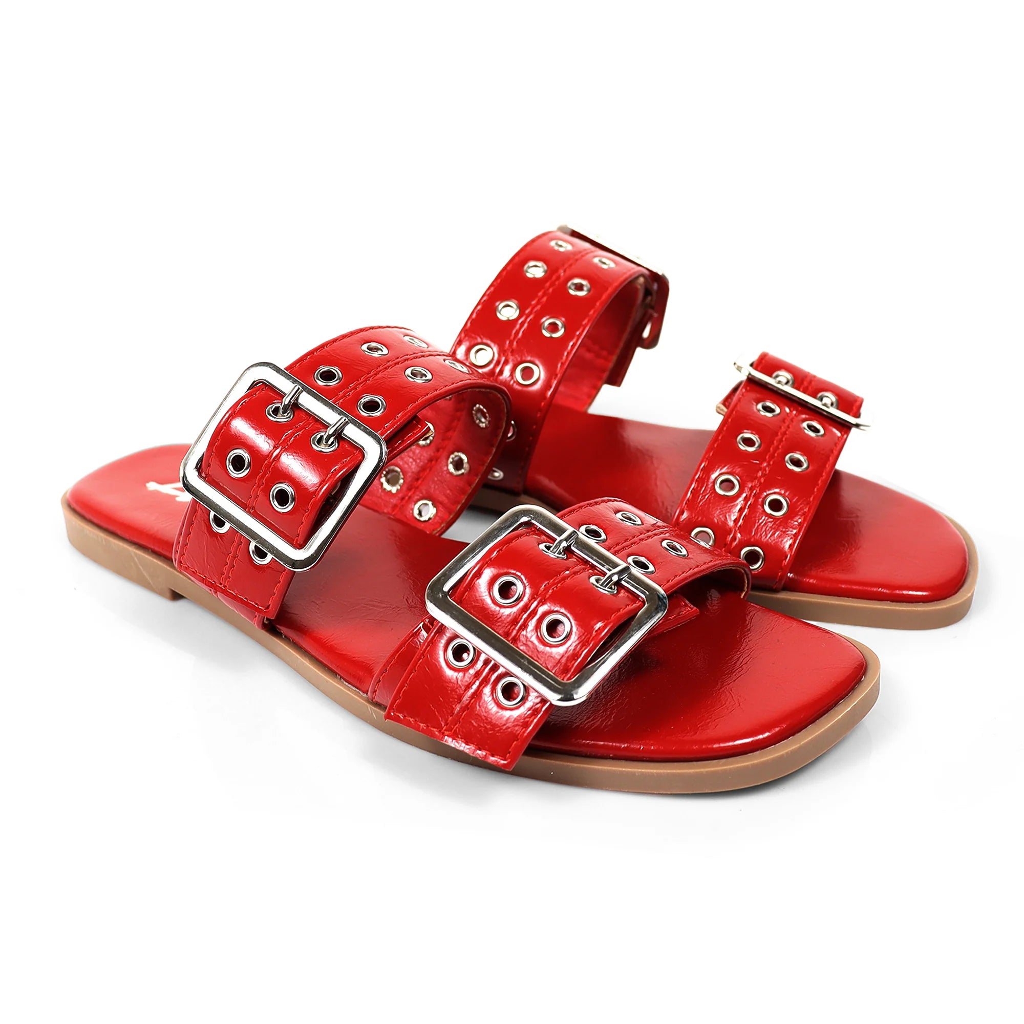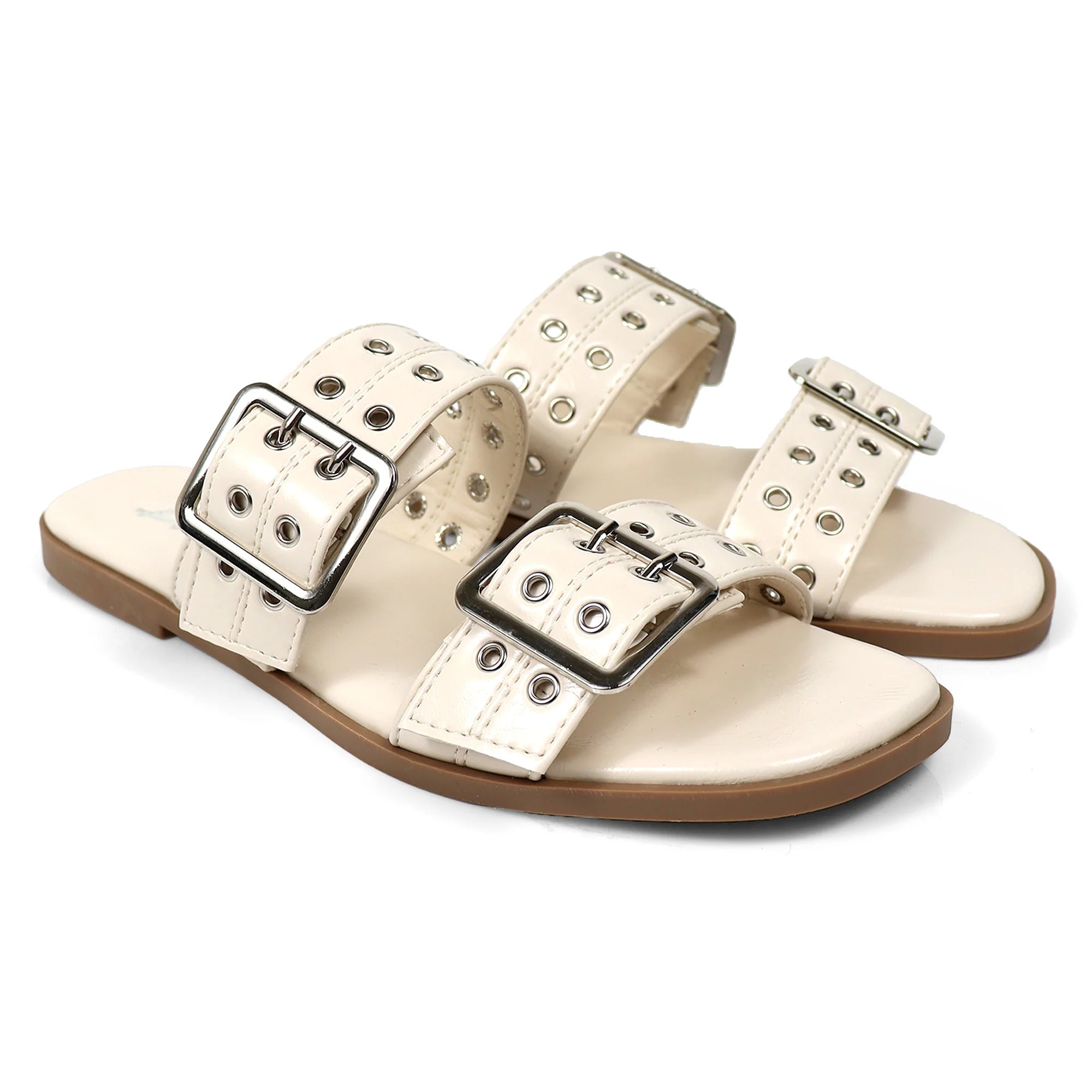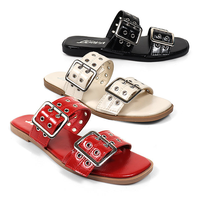 ROBIN-3 DUO STRAP BUCKLE SLIDE SANDAL W/ EYELET
