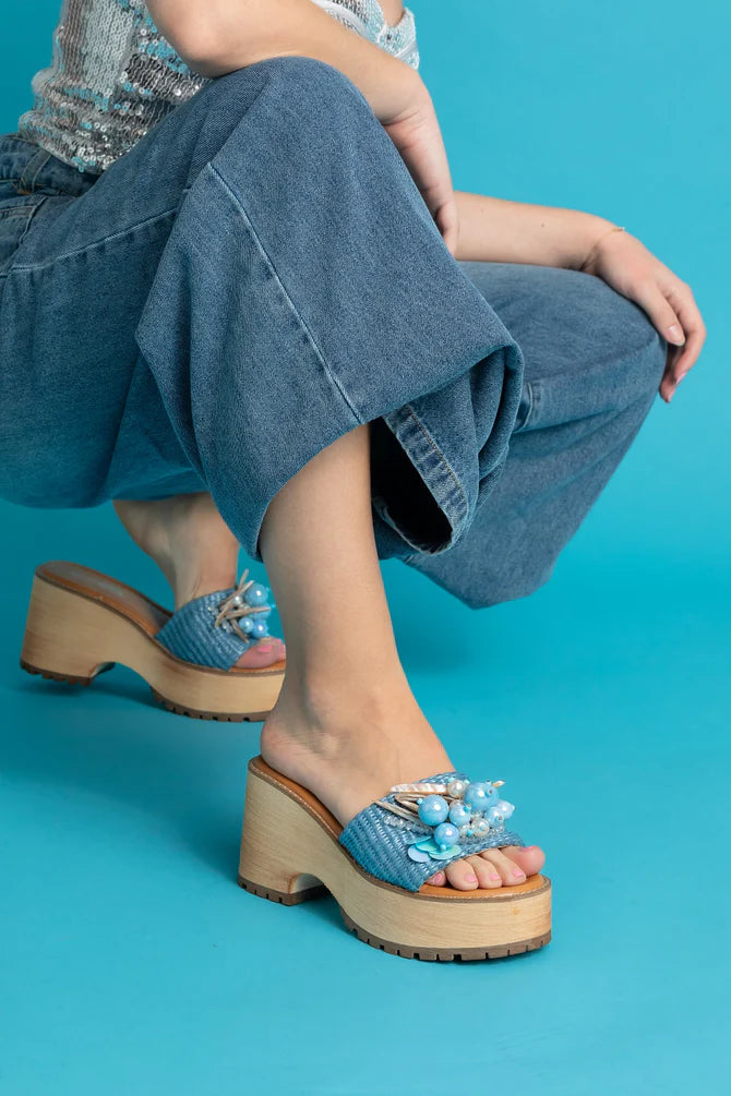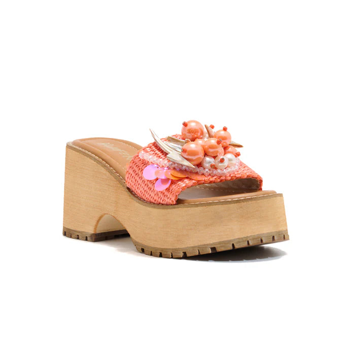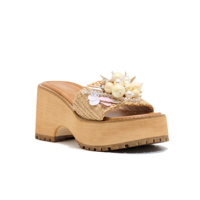 RAFFIA WITH PEARL DESIGNS PLATFORM SANDAL