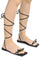 These Zelie sandals are perfect for a stylish and comfortable look. They feature strappy design and are decorated with a bow and spike trim. Lace up closure for an adjustable fit. These are your ideal sandals while sipping your mojito. Available in black and teal.